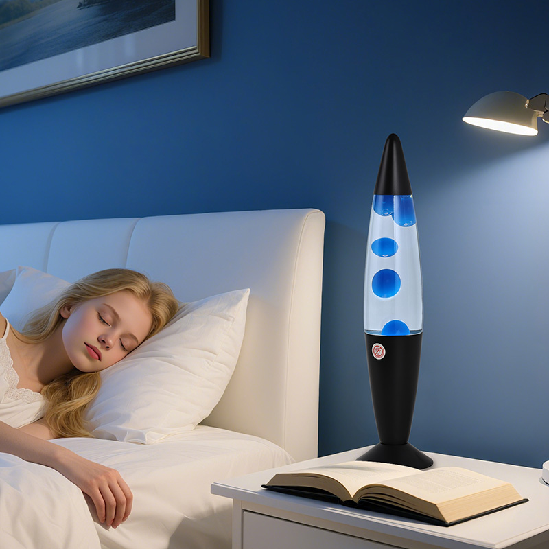 Lampu lava biru rona hitam 16 inci adalah plag masuk kuasa tinggi. cangkerang aluminium ungu ungu, lilin ungu, apabila dinyalakan, lampu lilin ungu tulen.
