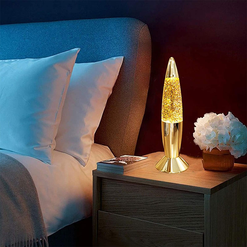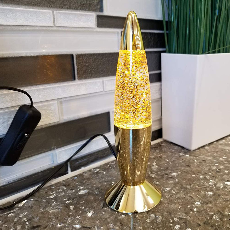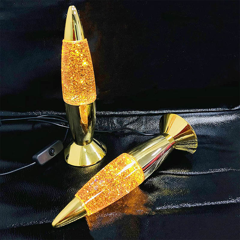 Lampu glitter 7 inci mempunyai cecair di dalam botol. Cecair bergerak tidak teratur selepas dipanaskan. terdapat botol gaya inci yang berbeza dan warna yang berbeza.
