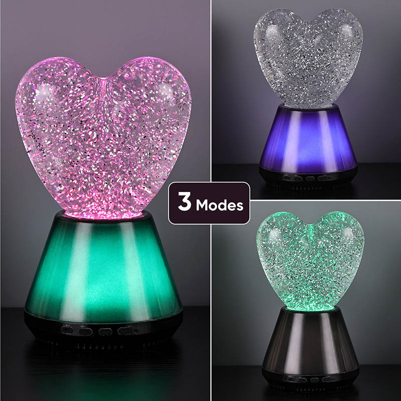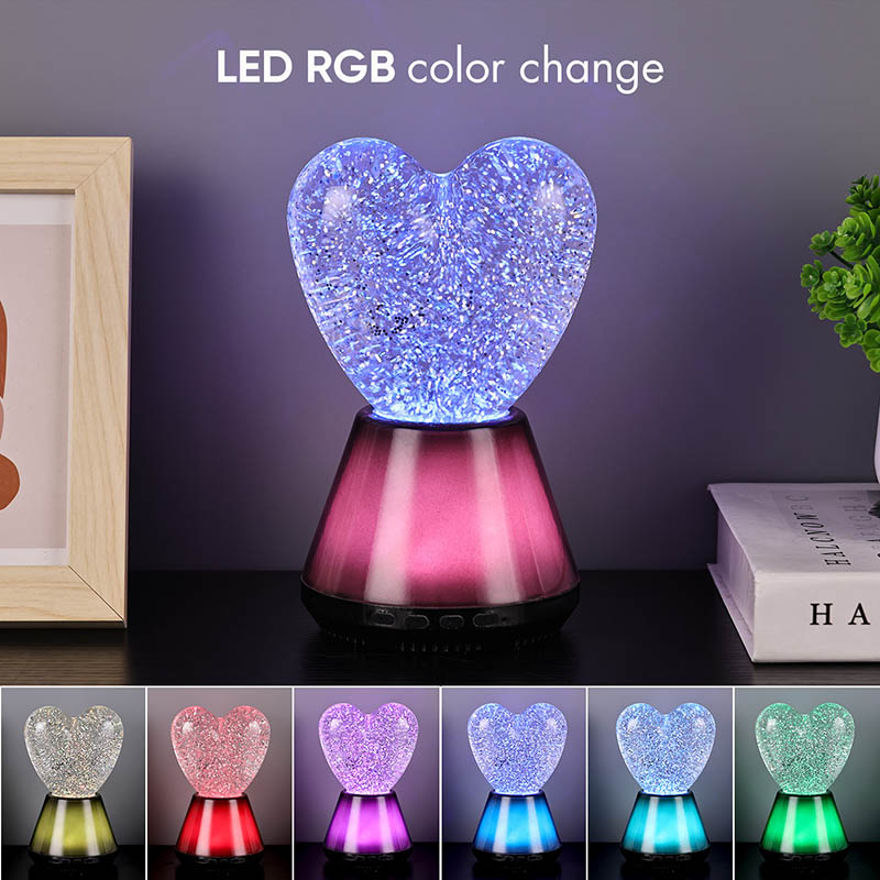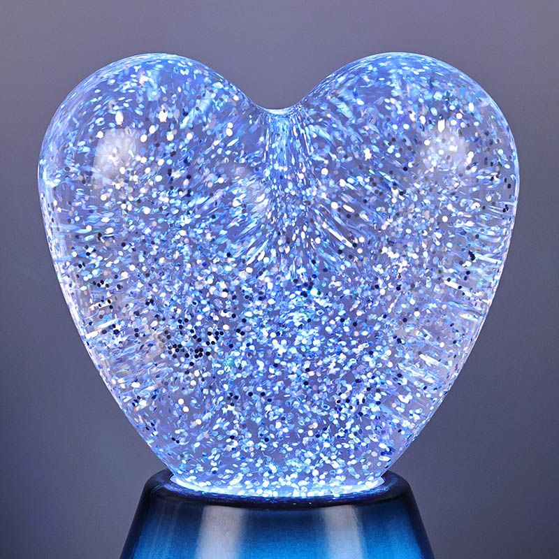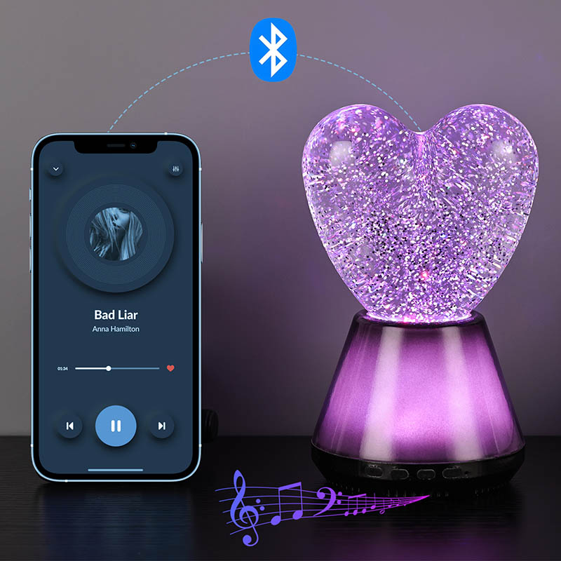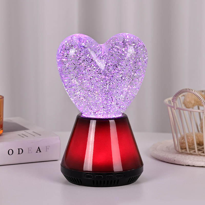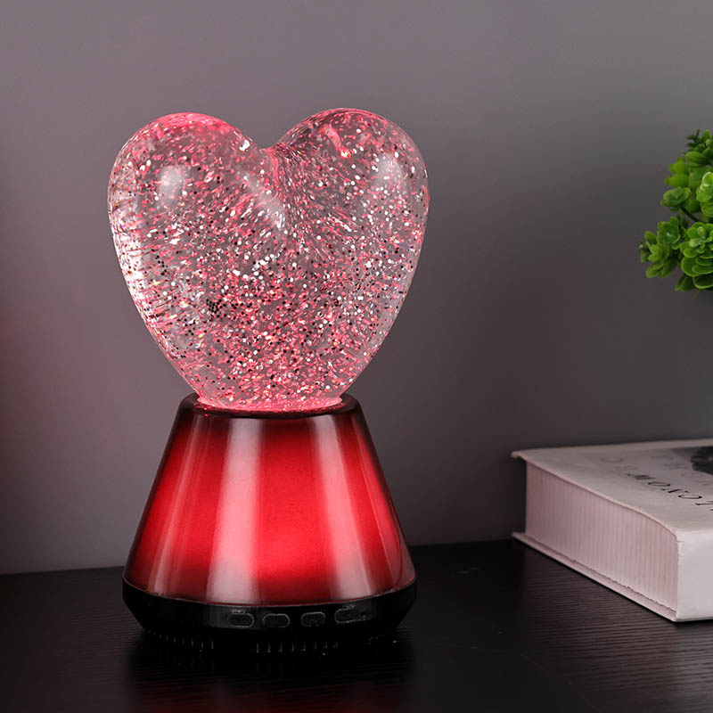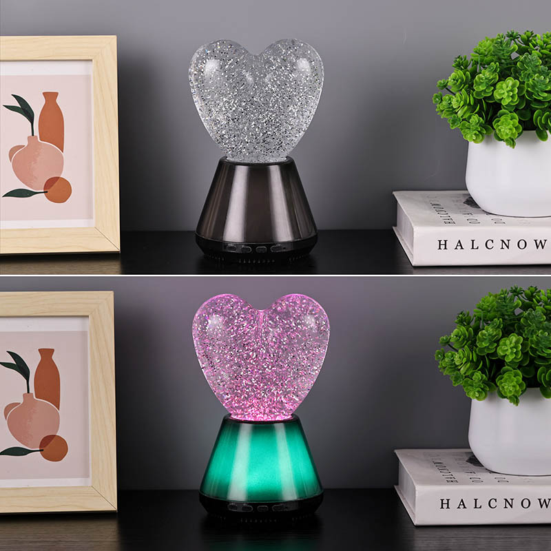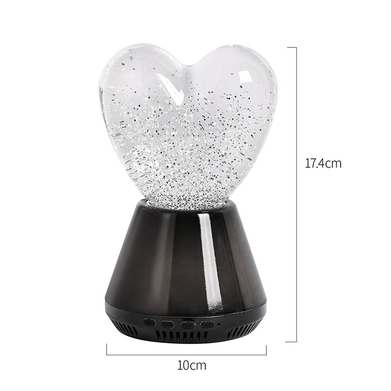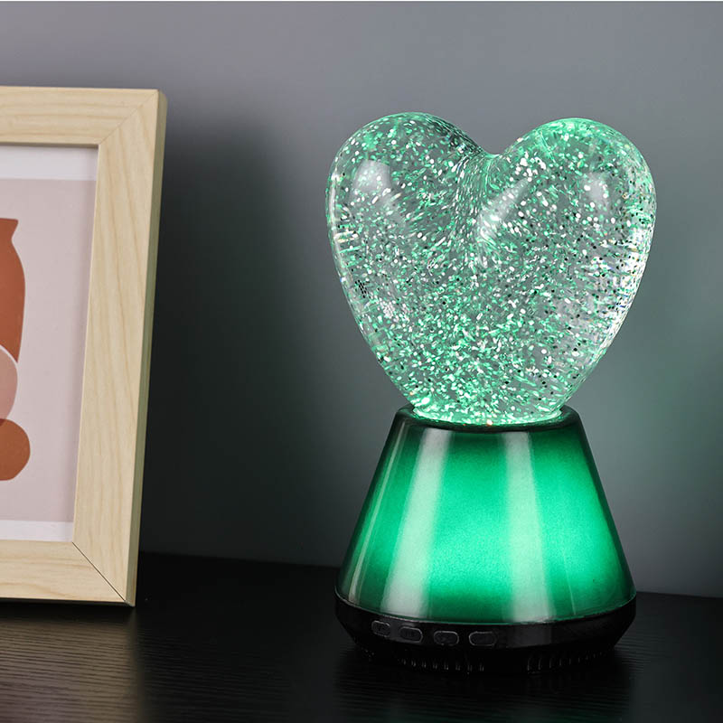 Bahagian dalaman lampu malam jantung bergemerlapan diketuai kawalan Bluetooth dipenuhi dengan cecair misteri, di mana banyak labuci berkilauan terapung. Apabila lampu dihidupkan, cecair perlahan-lahan akan mengalir di dalam bola kaca berbentuk hati, menghasilkan kesan seperti mimpi. Labuci ini kelihatan seperti bintang bertaburan, perlahan-lahan terapung di dalam cecair, memberikan orang perasaan berada di langit berbintang. Sama ada siang atau malam, dengan naungan hati ia boleh membawa kejutan dan kegembiraan kepada kanak-kanak, membolehkan mereka melepaskan imaginasi mereka dalam pencahayaan yang indah.