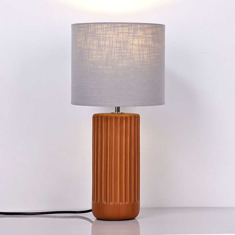 Lampu meja diterajui seramik dengan lorek fabrik direka bentuk dengan angin semula jadi, dan bahannya terdiri daripada penutup kain dan tapak seramik. Penutup kain boleh dipasang dengan lampu penjimatan tenaga putih atau lampu cahaya hangat berwarna hangat