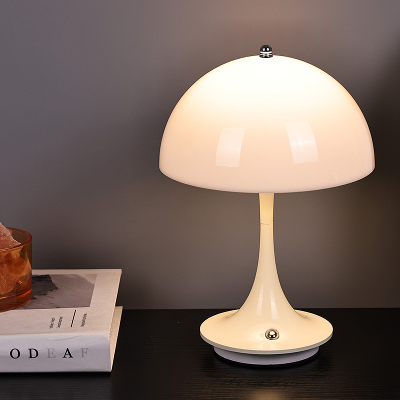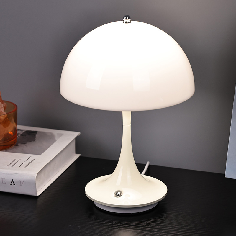 Lampu rumah Led Comel Dengan Teduh Cendawan mempunyai tapak logam dan tiang lampu logam, bersama-sama dengan tudung lampu plastik. Permukaan tudung lampu dilapisi lilin dan licin, dengan sentuhan yang sangat baik, menyerupai cendawan