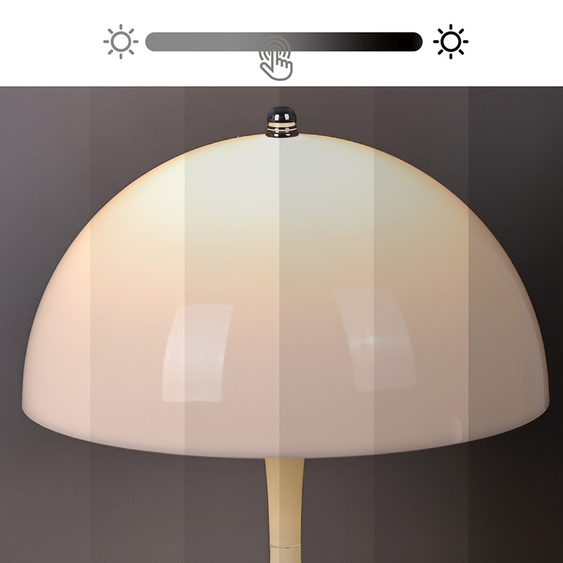 Suis untuk lampu adalah manik besi kecil di bahagian atas, yang dikawal sentuhan dan mempunyai tiga tahap cahaya hangat yang boleh dilaraskan. Reka bentuk ini disepadukan dengan lif ringan, mewujudkan suasana yang harmoni