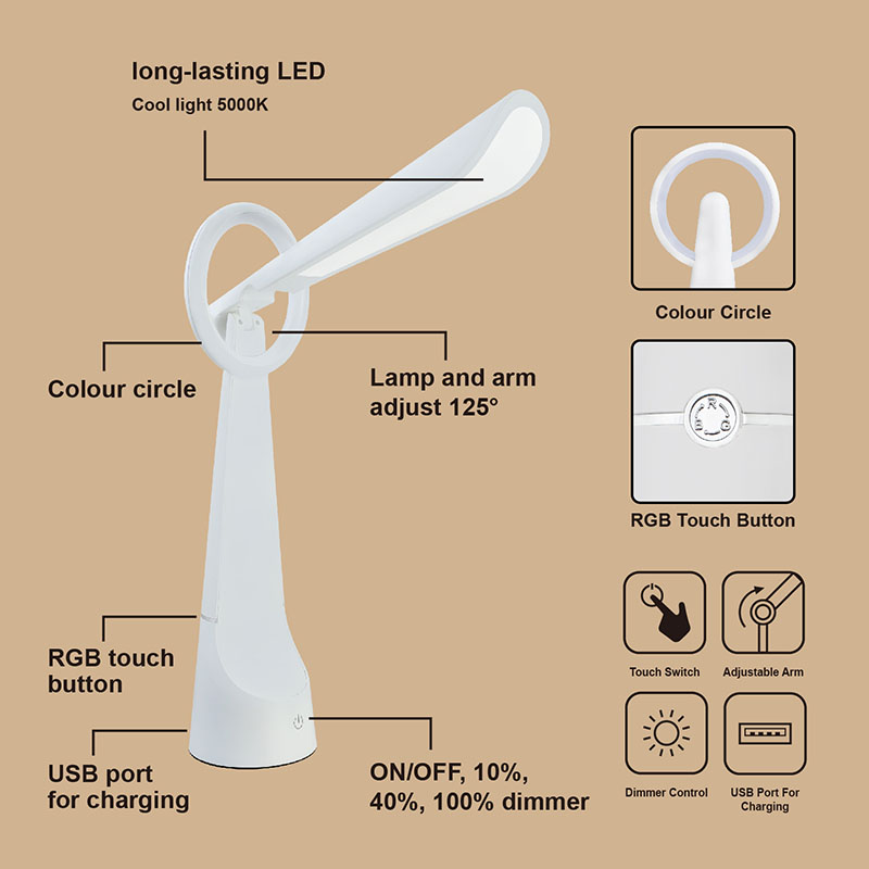 Dekorasi rgb led desk lamp light boleh 3 dimmer kembali pada badan produk. Kepala lampu yang dipimpin boleh membuka 125° max.