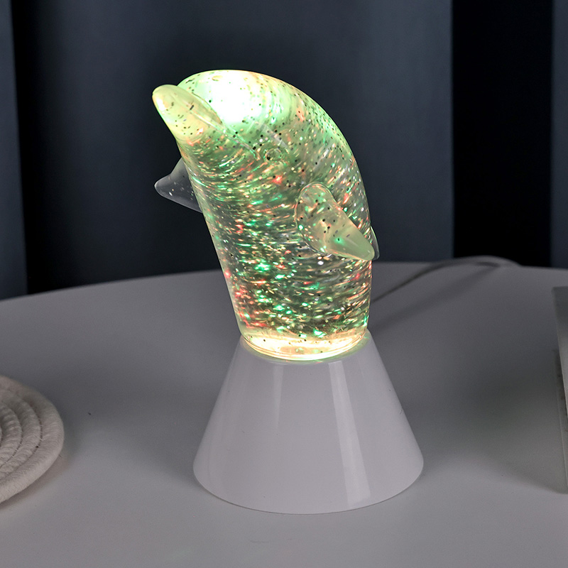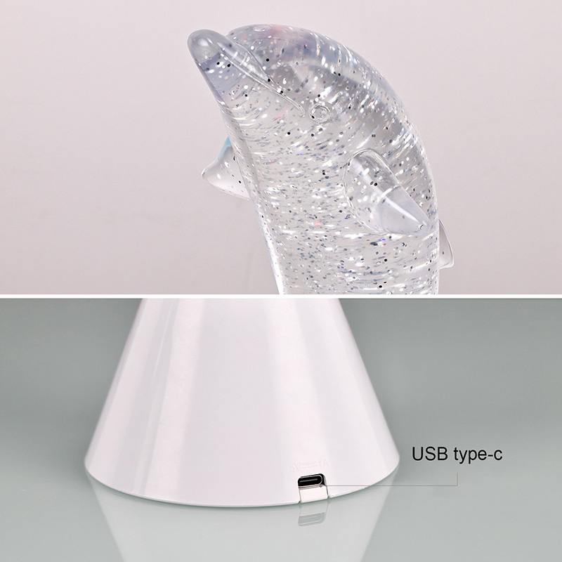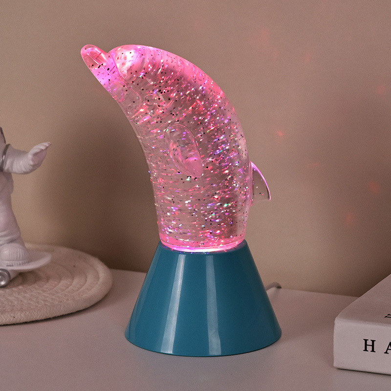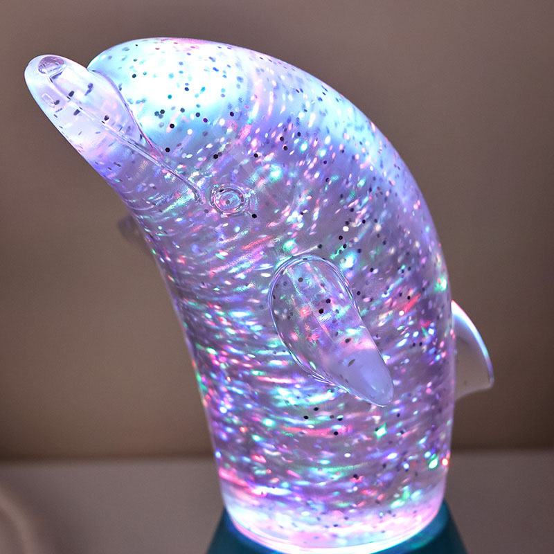 Dolphin Kid Gift Glitter RGB Nigh Light direka bentuk dalam bentuk ikan lumba-lumba yang comel, dengan garis-garis halus dan perincian yang indah memulihkan postur ikan lumba-lumba yang tangkas dengan sempurna. Di dalam cangkerang ikan lumba-lumba lutsinar, dalam bentuk labuci Pergerakan yang tidak teratur boleh memantulkan warna dengan cantik, mewujudkan suasana yang damai dan misteri. Setiap kali anda merenung lampu ini, anda berasa seperti berada di lautan yang dalam Antaranya, rasai pesona alam semula jadi yang tidak terhingga Dilengkapi dengan teknologi pencahayaan menukar warna RGB yang canggih, membolehkan anda bebas bertukar antara pelbagai warna. Sama ada oren hangat, merah jambu romantis atau biru tenang,