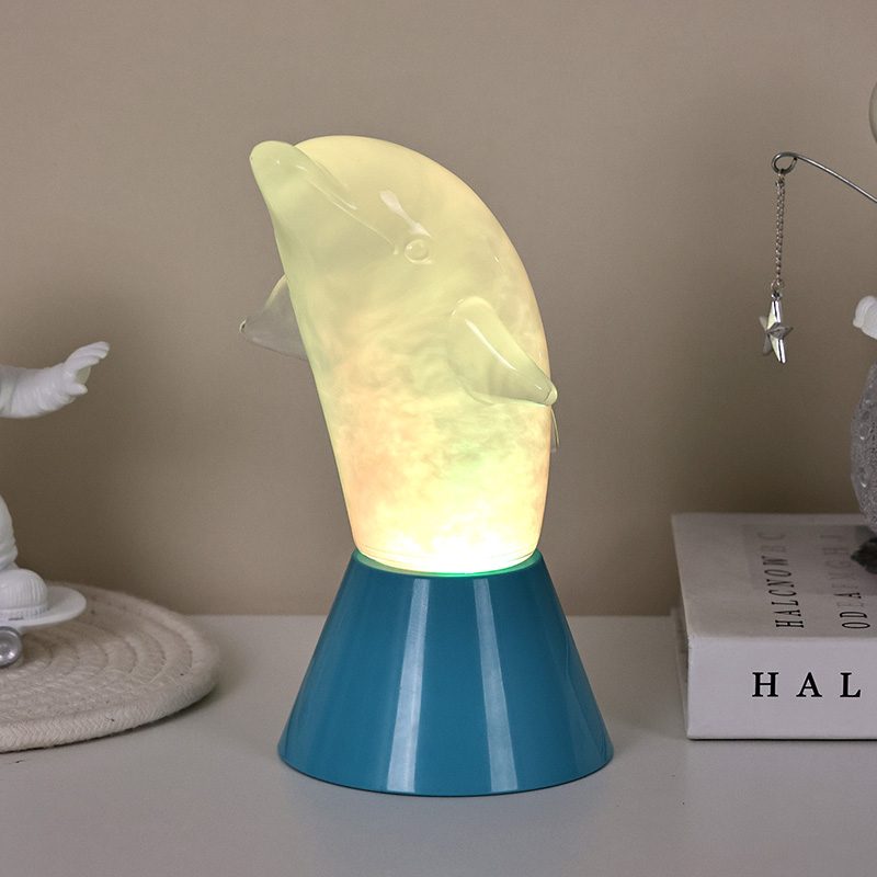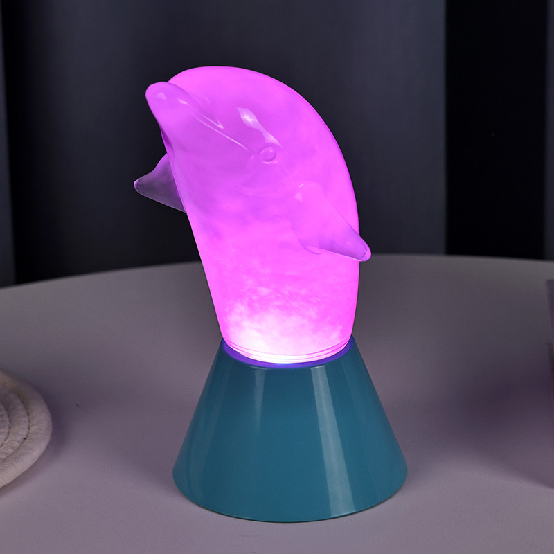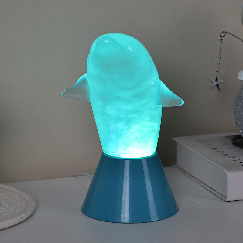 Dolphin Kid RGB Nigh Light direka bentuk dalam bentuk ikan lumba-lumba yang comel, dengan garis-garis halus dan perincian yang indah dengan sempurna memulihkan postur ikan lumba-lumba yang tangkas. Di dalam cangkerang ikan lumba-lumba lutsinar, cecair berkabus yang mengalir menyerupai ombak di lautan, bergoyang perlahan-lahan, mewujudkan suasana damai dan misteri. Setiap kali anda merenung lampu ini, anda seolah-olah berada di kedalaman lautan, mengalami pesona alam yang tidak terhingga.