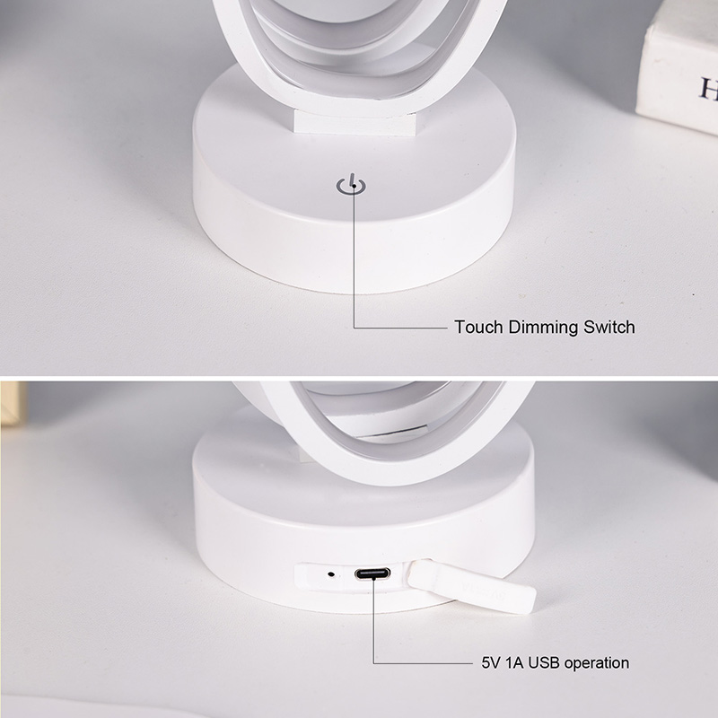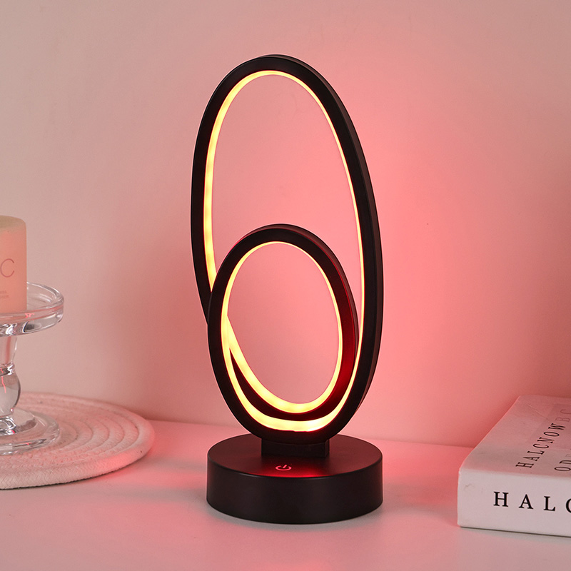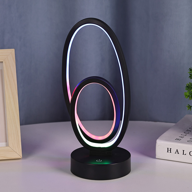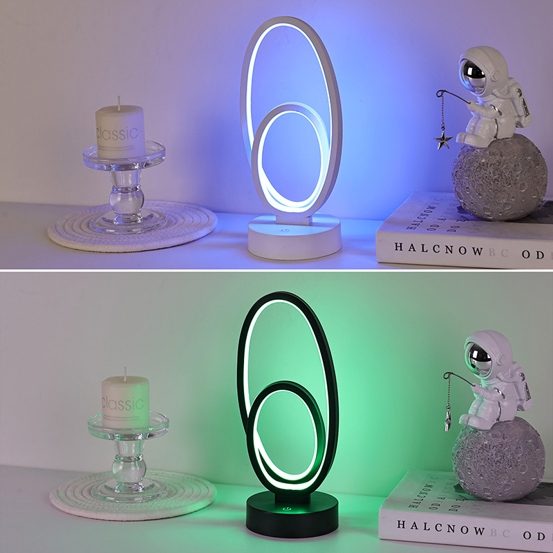 Double Circular Ring Shade RGB Desk Lamp ialah aksen artistik untuk ruang rumah, menampilkan bekalan kuasa voltan rendah selamat DC untuk prestasi yang stabil dan cekap tenaga, memastikan penggunaan yang selamat. Sesuai untuk pelbagai senario seperti ruang tamu, bilik kanak-kanak, kawasan belajar, dan bilik tidur