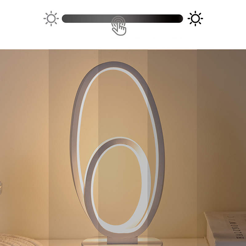 44*33*H23.5cmDouble Circular Ring Shade RGB Desk Lamp menampilkan reka bentuk dua cincin, dengan kontur elegan yang digariskan oleh garis minimalis. Menggabungkan logam dan plastik berkualiti tinggi, ia mempunyai tekstur yang luar biasa dan sentuhan yang halus. Selain sebagai alat pencahayaan, ia