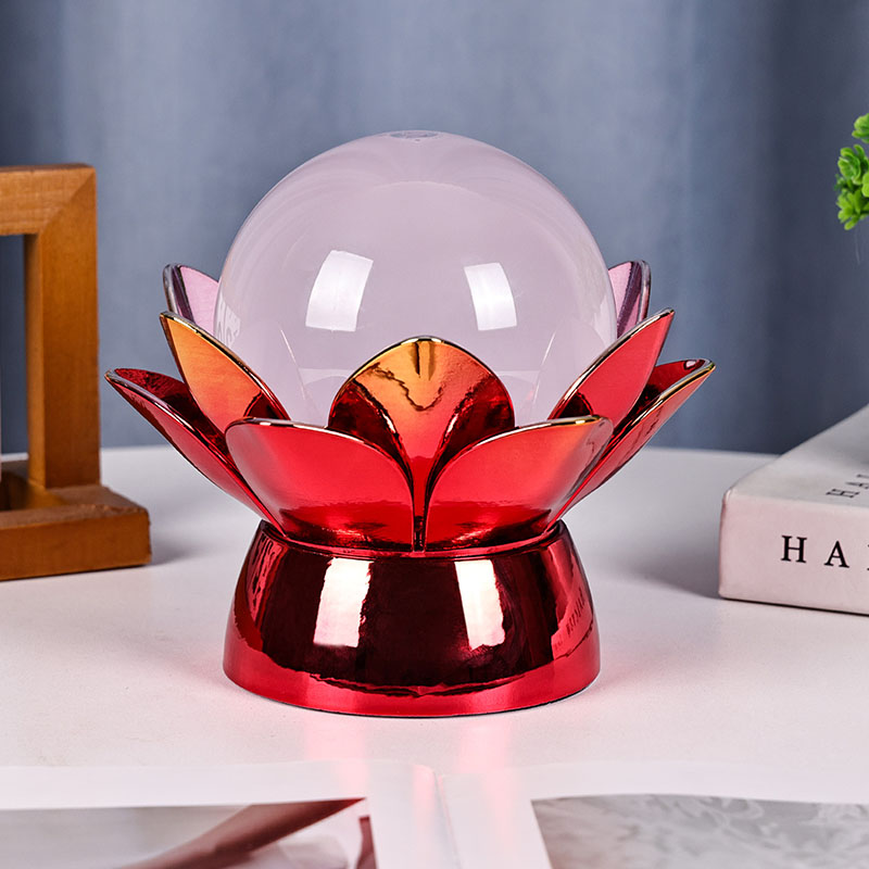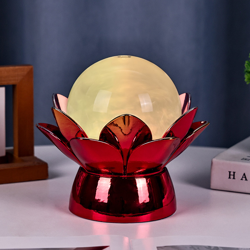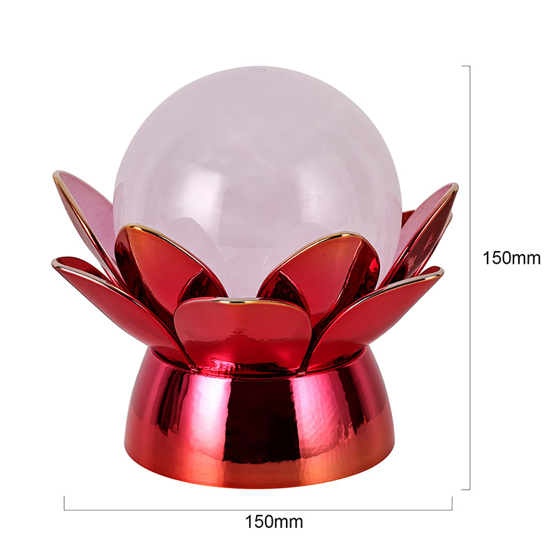 Dihasilkan daripada bahan berkualiti tinggi, asasnya diperbuat daripada logam yang digilap dengan kemasan merah-emas yang menyerlah yang memantulkan cahaya dengan cantik, menambah kedalaman dan kekayaan pada penampilannya. Reka bentuk teratai bukan sahaja berfungsi sebagai titik fokus estetik tetapi juga membawa makna simbolik yang berakar umbi dalam tradisi Timur-mewakili pencerahan, ketahanan, dan keharmonian. Permukaan reflektif meningkatkan kesan visual, menjadikan lampu bersinar walaupun dalam persekitaran cahaya malap.
