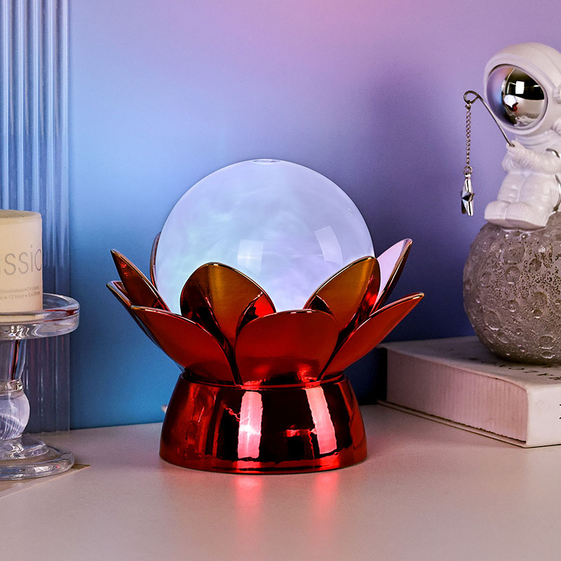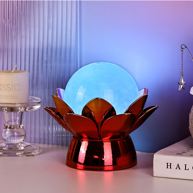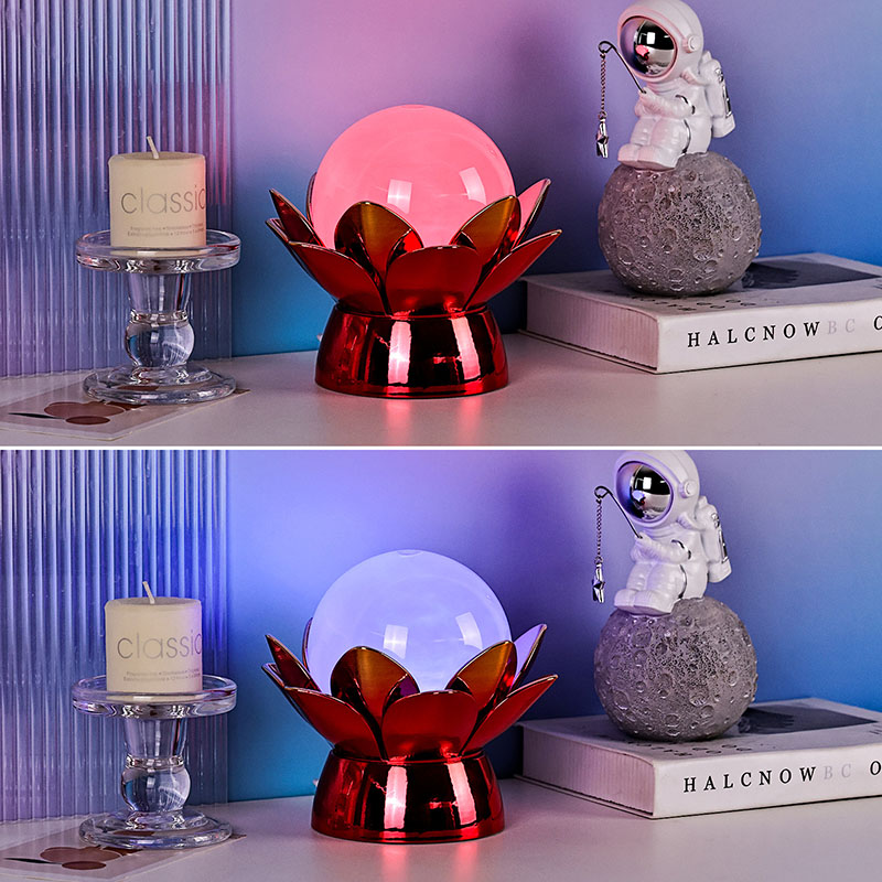 Lotus Cloud Globe Night Light yang mempesonakan – gabungan memukau reka bentuk yang diilhamkan oleh alam semula jadi, suasana yang menenangkan dan teknologi moden. Lampu hiasan yang elegan ini menampilkan glob kaca lut sinar yang dipenuhi dengan cecair khas yang menyerupai awan hanyut, menghasilkan kesan yang tenang dan halus semasa ia berputar dan mengalir dengan perlahan. Diinspirasikan oleh bunga teratai suci, lampu malam ini terletak pada tapak logam yang direka indah berbentuk seperti kelopak teratai yang mekar, melambangkan kesucian, keamanan dan kebangkitan rohani.