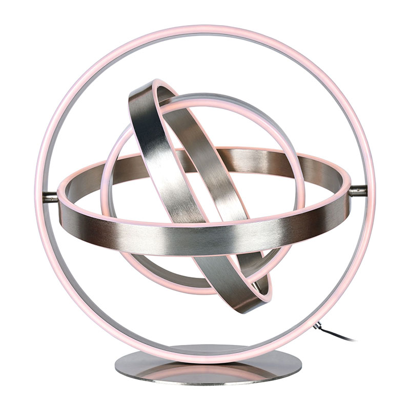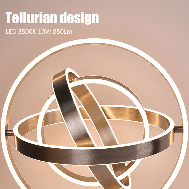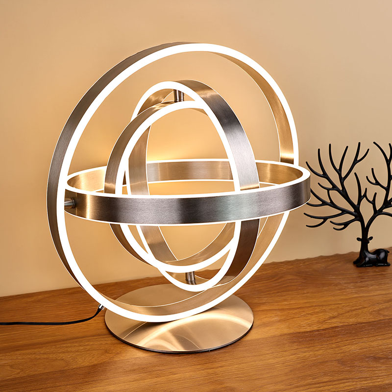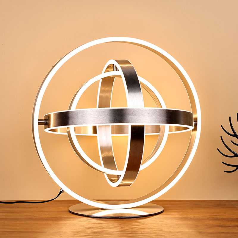 Thelampu meja dipimpin yang indahterdiri daripada berbilang lampu LED anulus, dengan lampu LED dipotong ke setiap pinggiran anulus. Reka bentuk anulus boleh berputar menjadi bentuk sfera