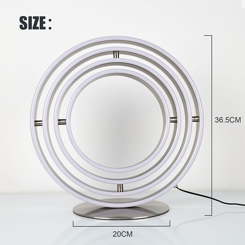 Lampu Meja Hiasan LED Berbilang Cincin adalah bukti reka bentuk moden dan fungsi praktikal. Dengan paparan yang menawan dan pembinaan tahan lama, ia adalah tambahan yang sempurna untuk mana-mana rumah. Tingkatkan ruang kediaman anda hari ini dan alami keindahan serta keajaiban yang dibawa oleh lampu ini.