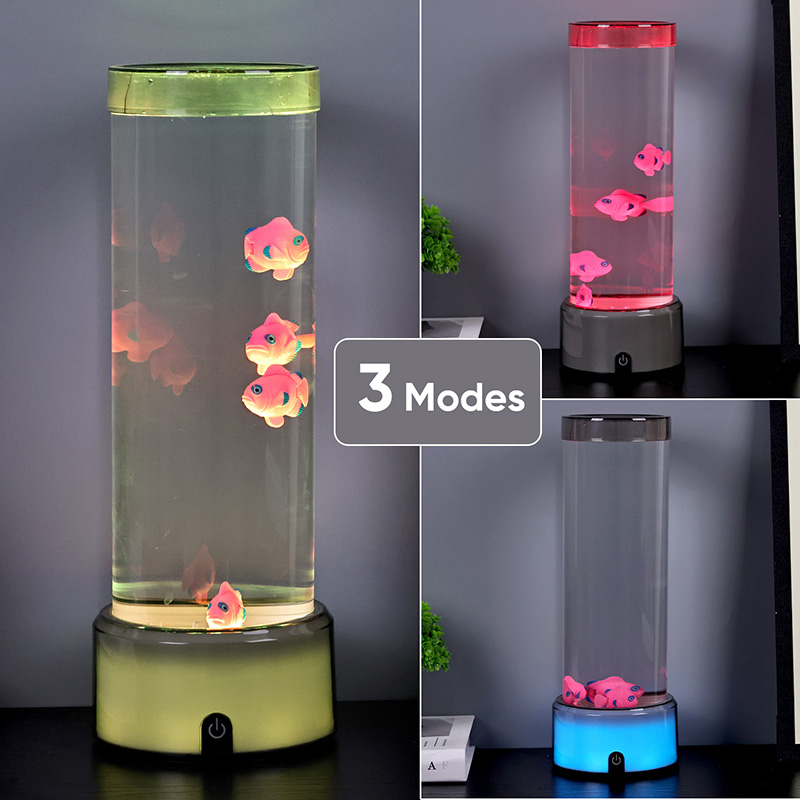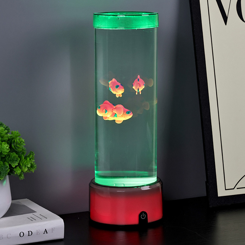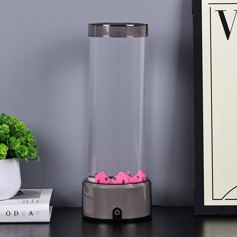Sentuh suis pilihan & berenang obor-oborLampu Ikan Obor-obor Dengan Lampu Hiasan Pangkalan RGB, mainan tontonan kanak-kanak yang direka bentuk baharu dengan reka bentuk penahan air silinder. Selepas diisi dengan air, tiga ekor ikan kecil diletakkan di dalamnya. Lampu Ikan Obor-obor Dengan Pangkalan RGB boleh berenang ke atas dan ke bawah apabila motor kecil di bahagian bawah berputar. Pada masa yang sama, asas mempunyai transformasi warna RGB. Sorotan terbesar produk ini ialah asasnya juga berubah dengan perubahan warna. Reka bentuk semua plastik adalah sangat ringan tanpa memegang air, yang sangat mudah untuk pengangkutan. Sumber kuasa lampu ikan disediakan oleh USB jenis C voltan rendah, yang sangat mudah
