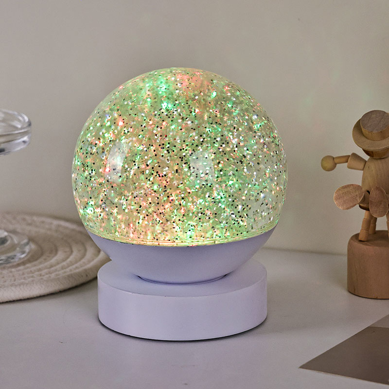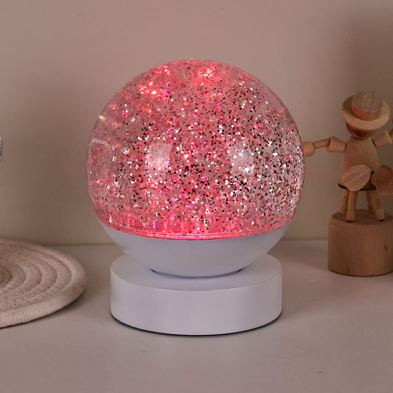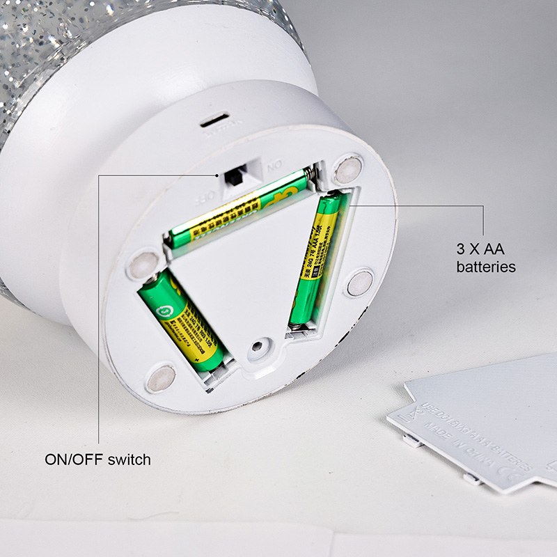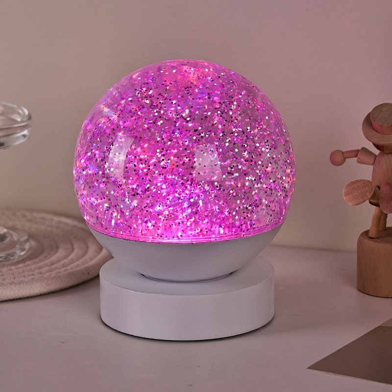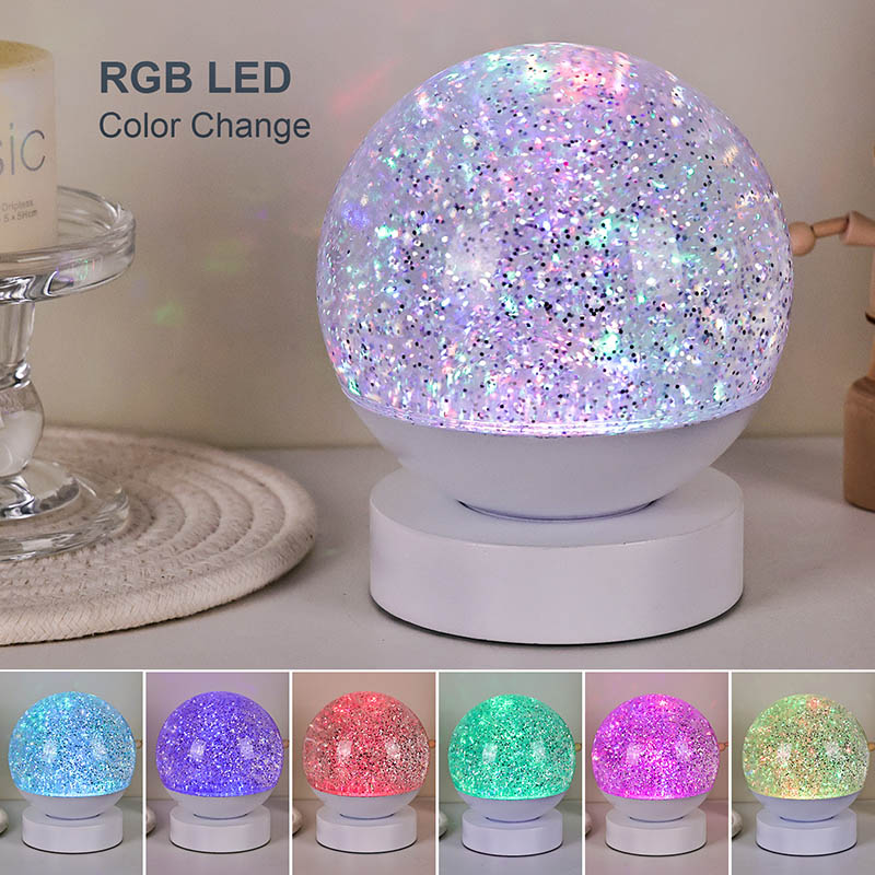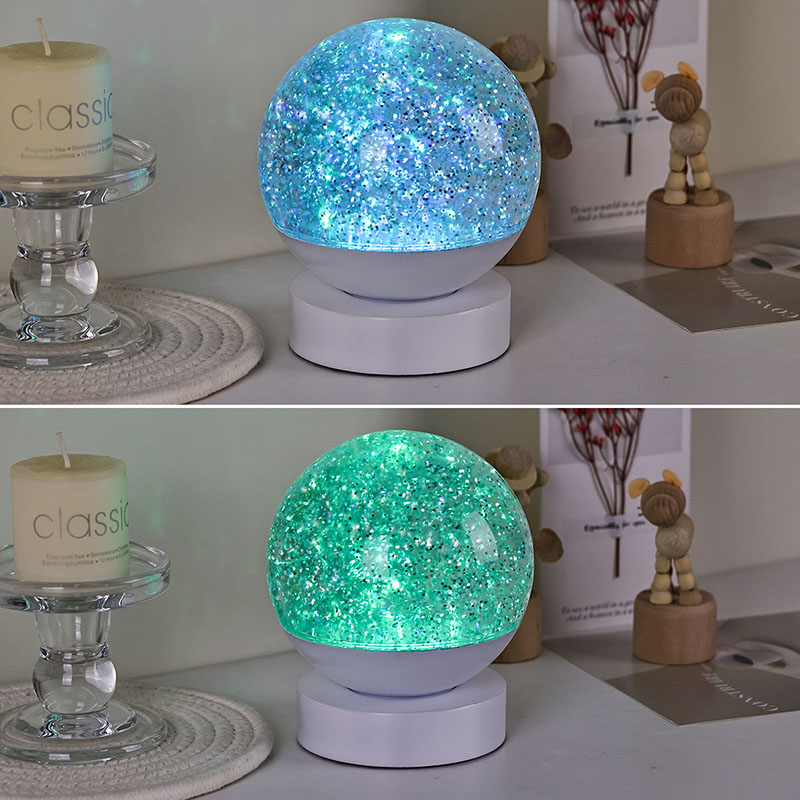 Lampu Hiasan Glitter RGB Led diperbuat daripada bahan akrilik berkualiti tinggi, menampilkan sfera lut sinar dengan transmisi cahaya yang sangat baik. Pangkalan diperbuat daripada plastik ABS mesra alam, memastikan kestabilan, ketahanan dan keselamatan tanpa bahan toksik. Ia beroperasi pada tiga bateri AAA terbina dalam (bateri dijual berasingan), menghapuskan keperluan untuk salur keluar kuasa dan menawarkan penggunaan yang mudah. Sesuai untuk diletakkan di tepi katil, meja atau di sudut mainan kanak-kanak. Dengan suis sentuhan mudah, lampu boleh dihidupkan atau dimatikan dengan mudah, menjadikannya mesra pengguna walaupun untuk kanak-kanak beroperasi secara bebas.