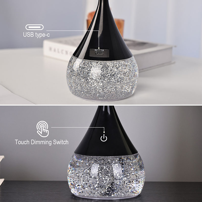 Di dalam pangkalan, botol yang jelas menempatkan cecair yang bergerak tidak teratur, mewujudkan kesan visual yang menawan. Lampu meja LED asas cecair dengan bentuk logam bukanlah cecair biasa; Ia telah dirumuskan khas untuk mencipta tarian yang memukau berkilau dan berputar. Apabila cecair bergerak, ia mencerminkan cahaya dalam corak yang sentiasa berubah, mewujudkan pengalaman visual yang sentiasa berubah.