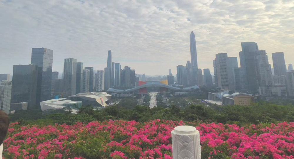 Selepas 20 minit mendaki, semua orang sampai ke puncak! Berdiri di hadapan patung gangsa Komrad Deng Xiaoping, menghadap ke bandar Shenzhen yang sibuk, saya dipenuhi dengan emosi.