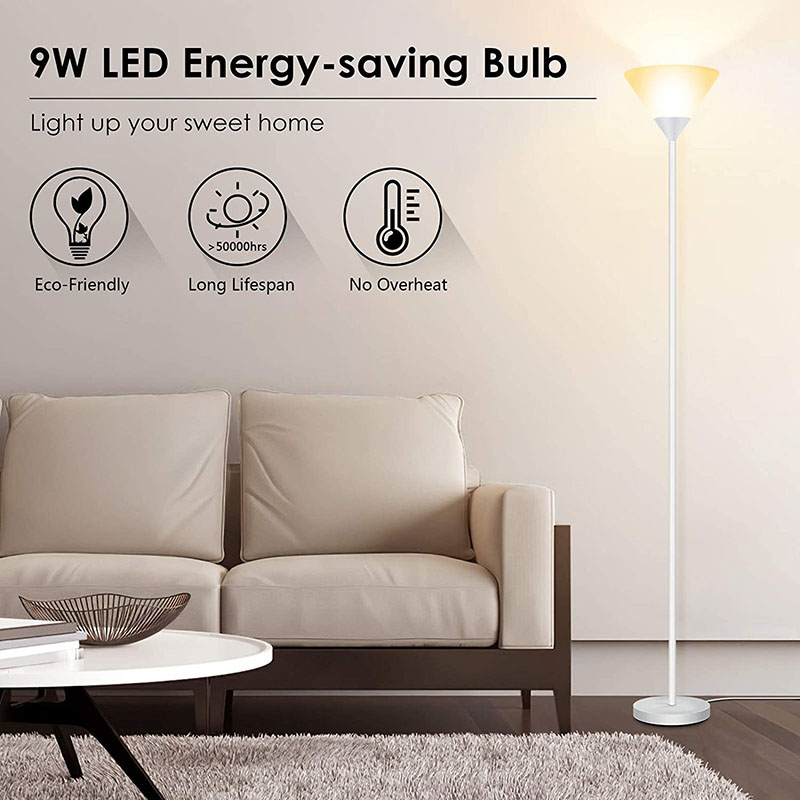 Dihasilkan daripada bahan berkualiti tinggi, Lampu Lantai LED Serbaguna mempunyai bingkai logam yang kukuh dan naungan plastik tahan lama. Reka bentuk minimalisnya memastikan ia sesuai dengan lancar ke dalam mana-mana hiasan dalaman, sama ada moden, tradisional atau eklektik. Struktur batang tunggal lampu memberikan kestabilan dan estetik yang bersih, manakala naungan kon menghalakan cahaya ke atas, mewujudkan suasana yang selesa.