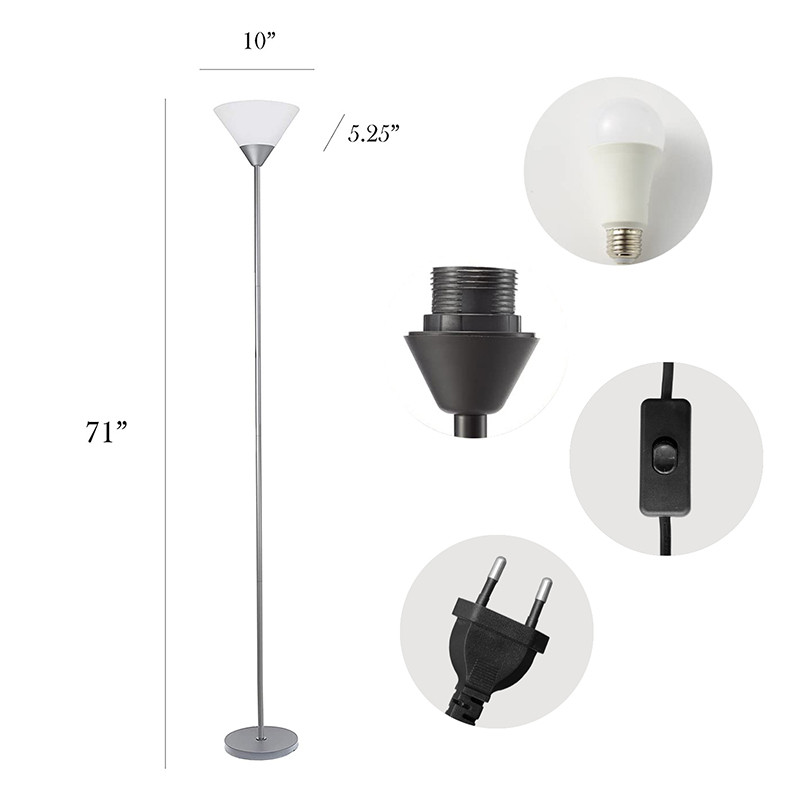 Lampu lantai boleh dilengkapi dengan mentol E27/E26, dan produk boleh lulus ujian piawaian Eropah dan Amerika