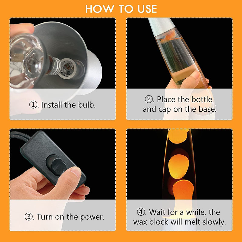 Tapak perak & Botol jernih, warna berbeza Lilin & cecair |