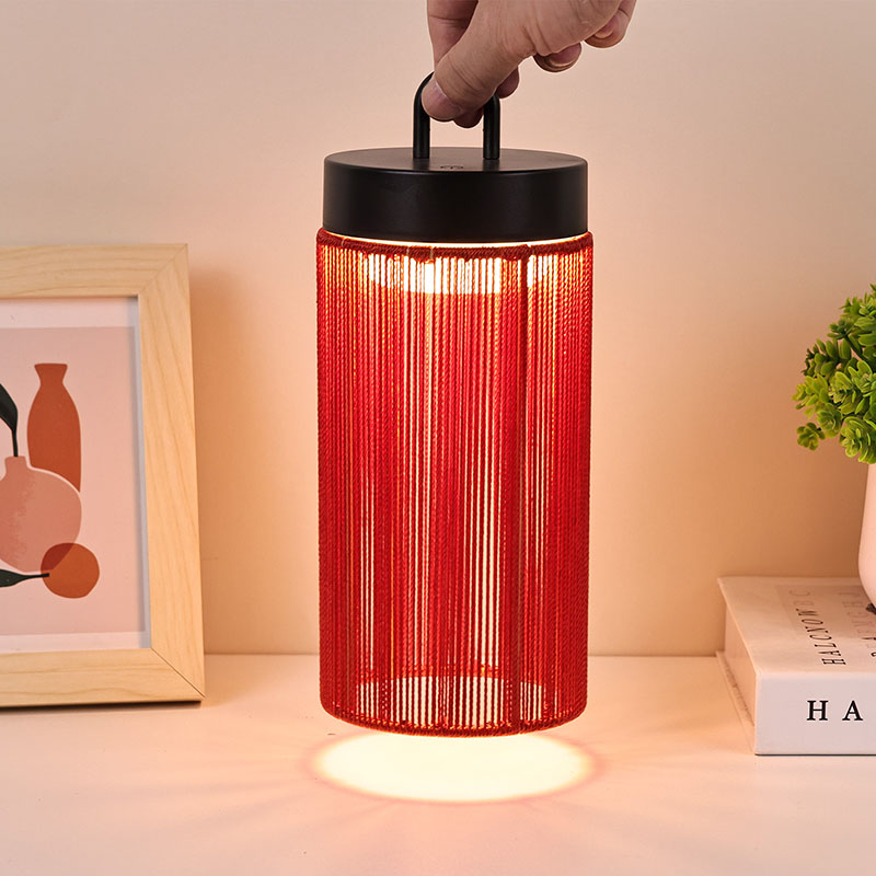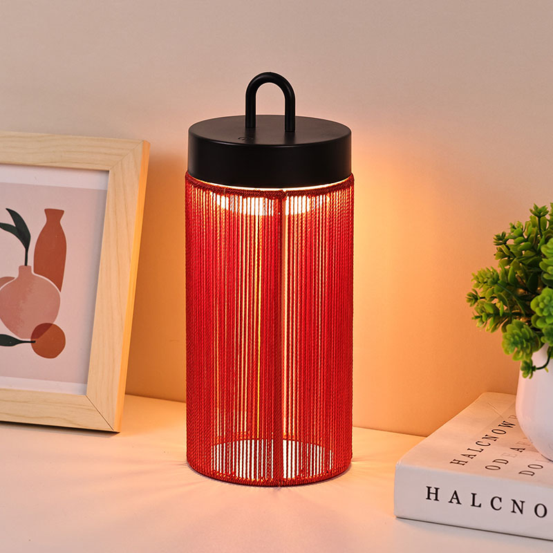 Reka bentuk keseluruhan: Dalam bentuk silinder, dengan garisan ringkas dan licin, Lampu meja dipimpin Khas dengan nilon mempunyai gaya minimalis moden. Lampu meja yang diketuai khas dengan bentuk nilon menjadikannya lebih stabil apabila diletakkan dan juga mudah untuk pergerakan pegang tangan. Padanan warna: Bahagian utama berwarna merah terang, memberikan orang pengalaman visual yang hangat dan meriah, yang mudah