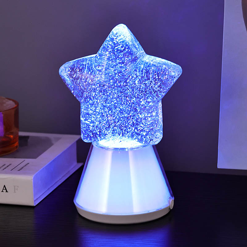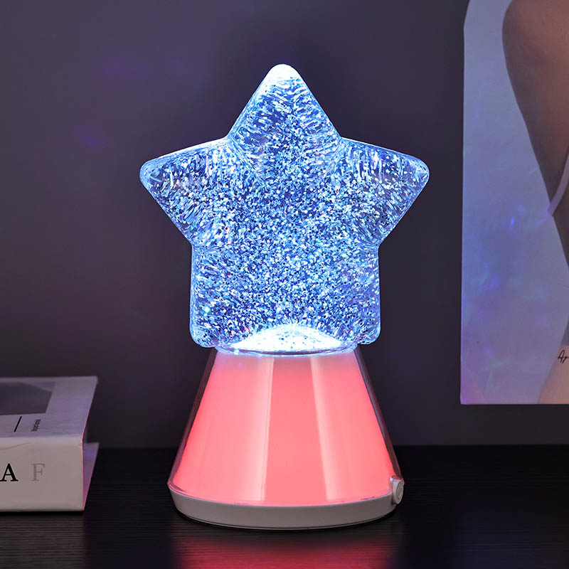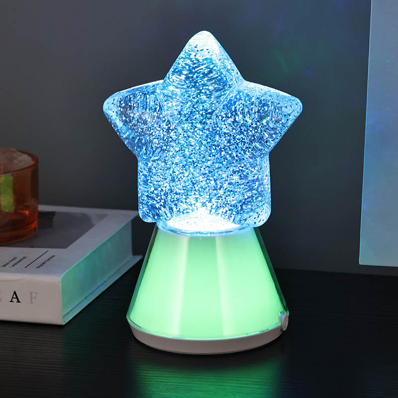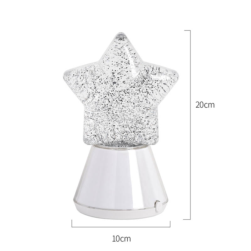 Keajaiban Malam dengan Lampu Hiasan Malam Berbintang Kami menampilkan reka bentuk berbentuk bintang yang menakjubkan yang menangkap intipati keindahan cakerawala. Dihasilkan daripada bahan berkualiti tinggi, lampu ini mempunyai tapak yang diperbuat daripada plastik lutsinar yang bertukar warna selari dengan lampu LED RGB dalaman. Bintang itu sendiri dipenuhi dengan zarah berkilauan berkilauan terampai dalam cecair, mencipta kesan visual yang menawan apabila lampu menyala. Semasa warna berputar melalui spektrum rona terang, kilauan menari di dalam, memancarkan kaleidoskop cahaya berkelip-kelip yang akan membuatkan anda terpesona.