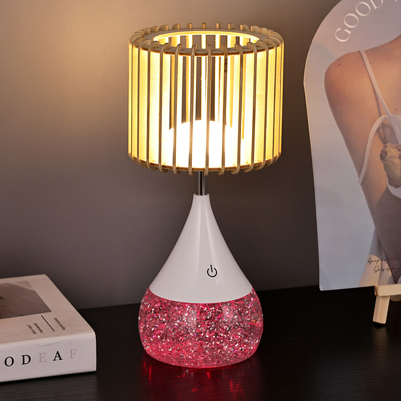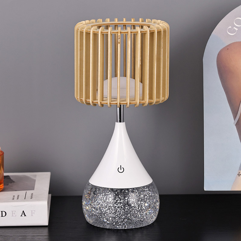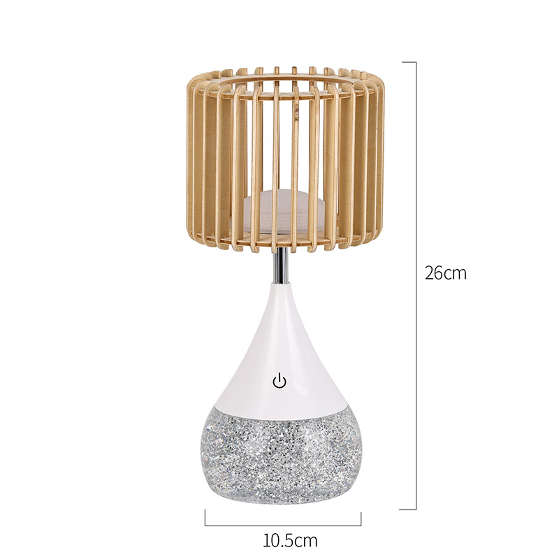 Dicipta dengan ketepatan, Lampu Meja LED Rekaan Baharu menampilkan reka bentuk anggun dan elegan yang diperbuat daripada bahan plastik tahan lama. Tudung lampu dibuat daripada selat kayu semula jadi, menghasilkan penampilan moden yang menarik secara visual. Sama ada anda meletakkannya di atas meja, meja sisi katil atau mana-mana permukaan lain, lampu ini pasti memikat dan menggembirakan.