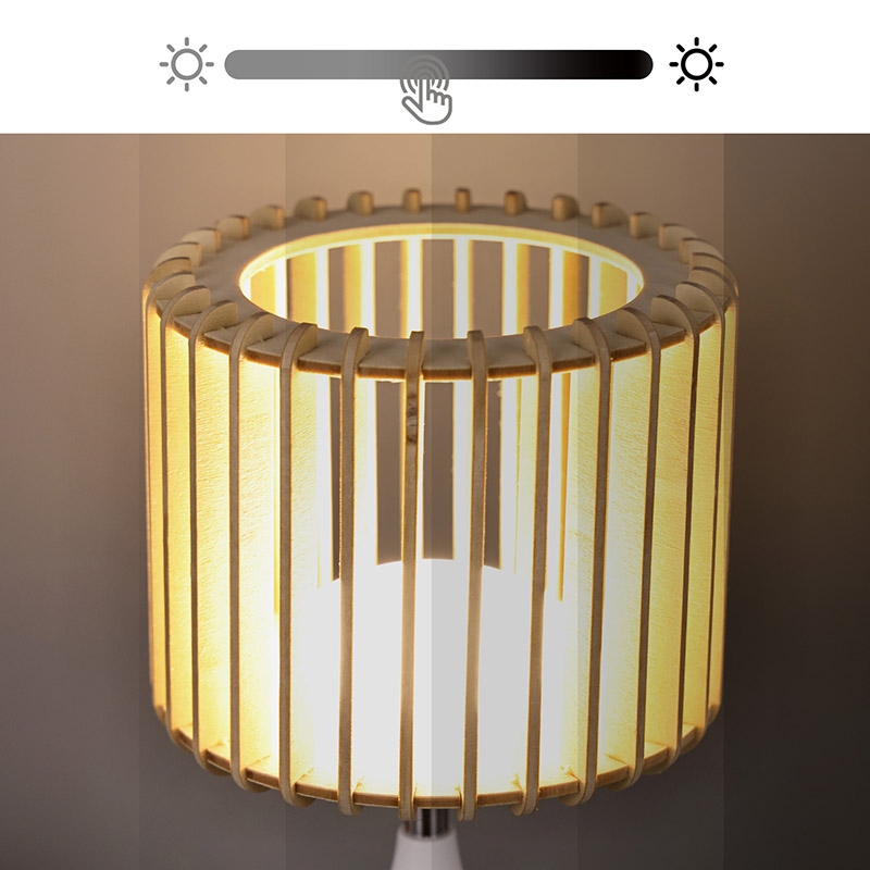 Lampu ini diperbuat daripada plastik berkualiti tinggi dan selat kayu asli, memastikan ketahanan dan keselamatan.