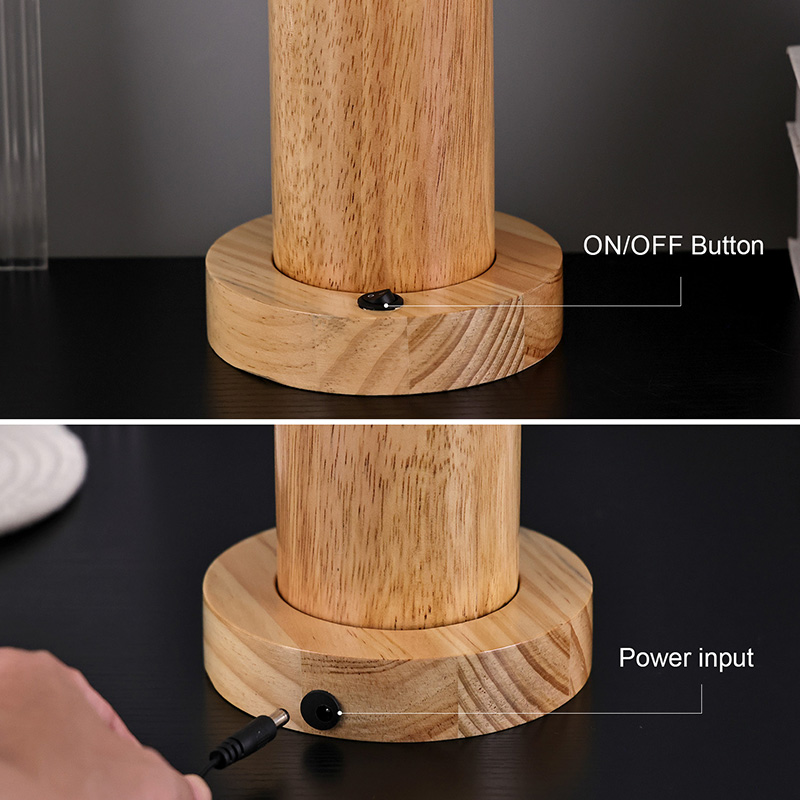 Asas lampu meja bergemerlapan teduh Menara diperbuat daripada kayu berkualiti tinggi, dengan tekstur yang hangat dan semula jadi. Gabungan sempurna asas kayu dan teknologi moden bukan sahaja meningkatkan prestasi keseluruhan