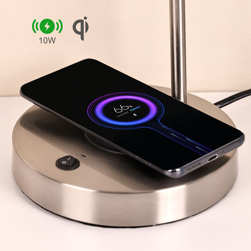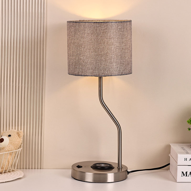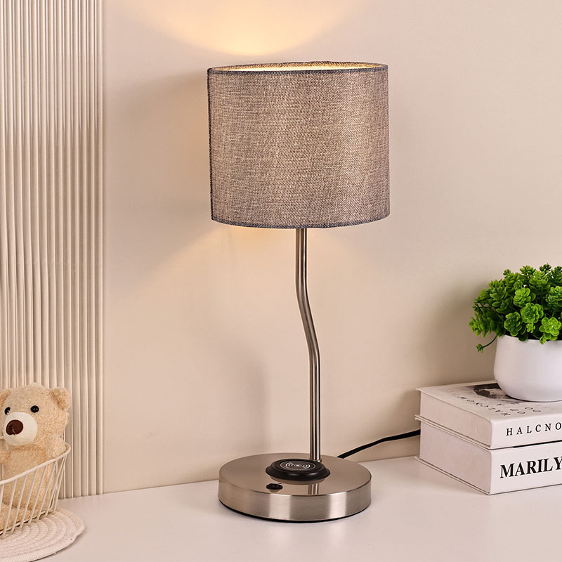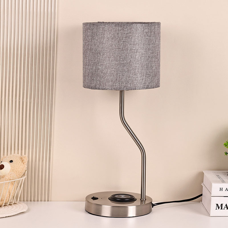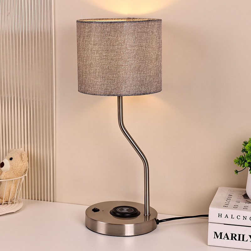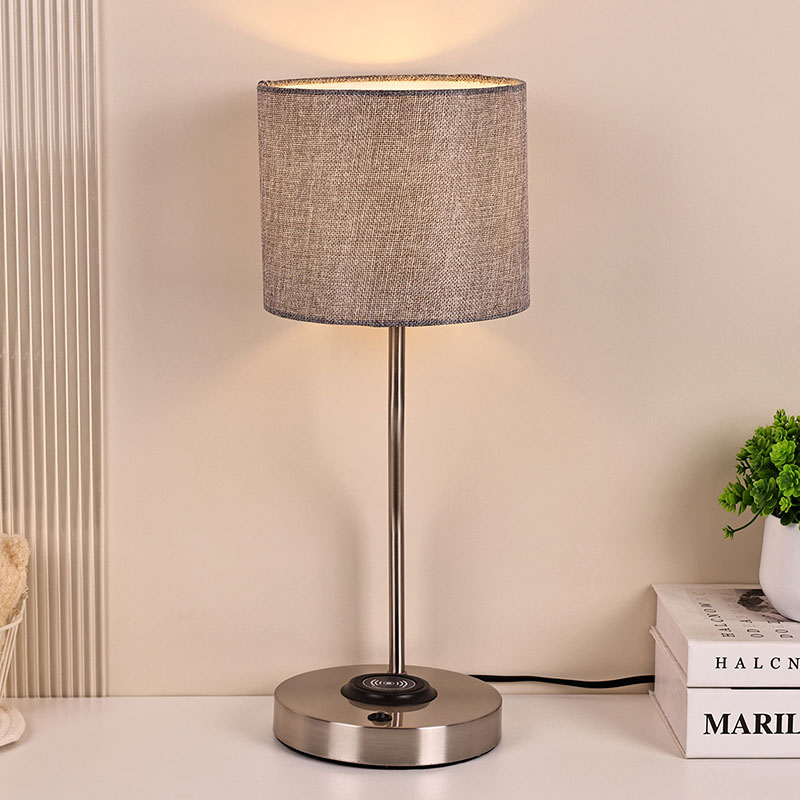 lampu meja pengecas telefon wayarles dengan lorek fabrik mempunyai lampu pengecas wayarles voltan 5V1A