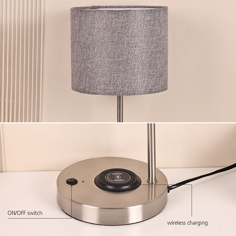 suis HIDUP/MATI pada asaslampu meja pengecas telefon wayarles dengan lorek fabrik menggunakan reka bentuk penutup kain berkualiti tinggi, dengan fabrik yang halus dan lembut, tekstur yang jelas dan semula jadi, memberikan perasaan hangat dan selesa kepada orang ramai. Sarung kain bukan sahaja dapat meresap cahaya dengan berkesan, menjadikan cahaya lebih lembut dan lebih seragam, tetapi juga mengurangkan silau dan kerengsaan pada mata, melindungi penglihatan anda. Sarung kain kelabu mempunyai ton warna yang ringkas dan elegan, yang boleh digabungkan dengan sempurna dengan pelbagai gaya hiasan dalaman, mewujudkan suasana hangat dan elegan